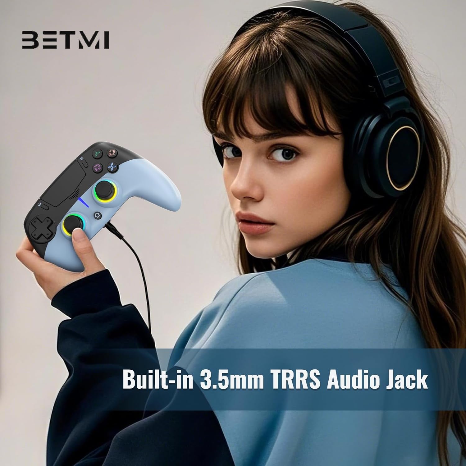 LED Wireless Gaming Controller for PS5 Pro Slim and PC, Hall Effect Joysticks and Triggers, RGB Lighting with 4 Modes, Macro Support, 6-Axis Motion Control, Dual Vibration, 3.5mm Audio Jack, Black and Blue